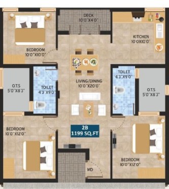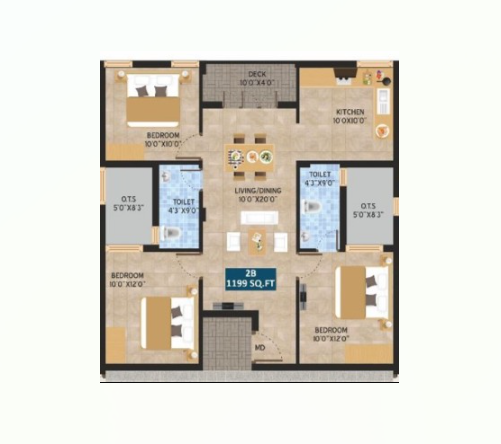 Vesta Breeze is an ultra-modern apartment in Puzhuthivakkam. An emerging suburban locality that still offers affordable real estate options. Developed by the famous Vesta Builders and Promoters this is a nice stilt plus 3-story structure that offers both 2.5 & 3 BHK apartment units for sale. The unit size of these flats are all made opulently and range between 1171 - 1199 Sq.Ft. Overall there are 9 apartment units for sale and they all come equipped with covered car parks in the stilt level, easily accessed lifts and beautiful balconies. This area also boasts good rental demand, so buying these flats for investment purposes is also a smart choice.