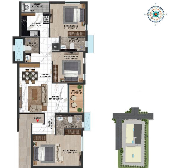VGK Sai Hardik is a 5-story apartment complex developed by VGK Builders, a premium real estate developer in Chennai city who specializes in residential development. These flats are for sale in Tambaram East, which is an emerging residential and commercial area. These flats are available in 2 & 3 BHK configurations and have a unit size ranging between 1195 - 1467 Sq.Ft. Those looking for roomy apartments will love these flats. Overall, there are 19 flats for sale, and they all boast modern floor plans and beautiful balconies. These apartments enjoy power backup, a kid's play area, EV Charging ports, and many more amenities.