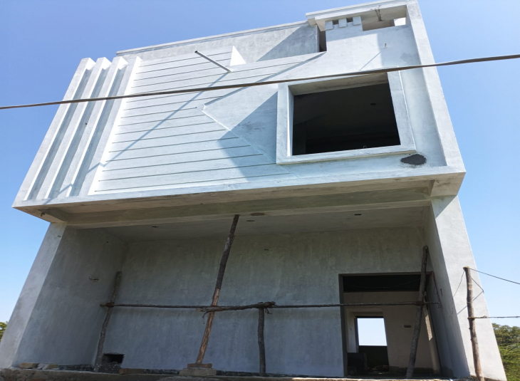 A spacious 2 BHK independent house for rent at Kundrathur. The house is on the ground floor with a built-up area of 950 sq ft (total 1200 sq ft). It includes a living room, kitchen with a small side service area, a pooja room, two bedrooms, and bathrooms (attached and common), all painted and maintained.